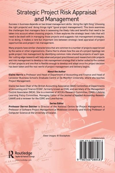 Success in business depends on two broad management skills: 'doing the right thing' (choosing the right projects) and 'doing things right' (good project management). This book examines the challenges that managers face in assessing the likely risks and benefits that need to be taken into account when choosing projects. It then explores the strategic level risks that will need to be dealt with in managing those projects and suggests risk management strategies. In so doing, it makes a rare but important link between strategic level appraisal of project opportunities and project risk management. Many projects have similar characteristics that are common to a number of projects experienced by the same or other organizations. Elaine Harris shows how the use of a project typology can guide project risk management by identifying common risks shared by projects of each type. Her cutting edge research will help advanced project practitioners and researchers in projects and risk management to develop a risk management strategy that is better suited to the context of their projects and one that is flexible enough to develop and adapt once the project decision has been taken and the real-world of project management and delivery begins.