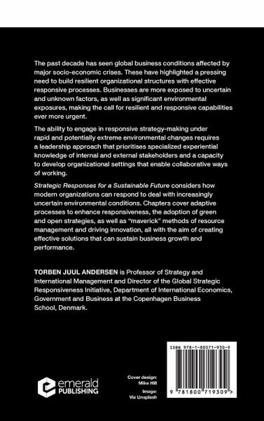 Strategic Responses for a Sustainable Future considers how modern organizations can respond to and deal with increasingly uncertain environmental conditions with the aim of creating effective solutions that can sustain business growth and performance.