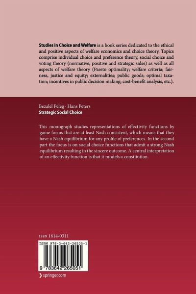 "The book studies stable representations of constitutions. ... the book is very well written and perfectly organized ... . I can highly recommend the book by Bezalel Peleg and Hans Peters: a real pleasure for scholars working on effectivity functions and social choice functions, and a great learning opportunity for those who are not that familiar with the topics in question. It is an excellent contribution, bringing together a lot of material in a single manuscript in a coherent way." (Agnieszka Rusinowska, Social Choice and Welfare, Vol. 40, 2013)