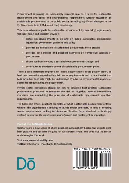 Procurement is playing an increasingly strategic role as a lever for sustainable development and social and environmental responsibility. Greater regulation on sustainable procurement in the public sector, including significant changes to the EU Directive in April 2014, are driving this change.This comprehensive guide to sustainable procurement by practising legal experts Colleen Theron and Malcolm Dowden distils key developments in EU and UK public sustainable procurement legislation, government guidance and policy; provides an introduction to sustainable procurement more broadly; provides case studies and practical examples on contractual aspects of procurement; shows you how to set up a sustainable procurement strategy; and contributes to the development of sustainable procurement policy. There is also increased emphasis on "clean" supply chains in the private sector, as best practice seeks to mesh with public sector requirements and reduce the risk that bids for public contracts might be undermined by adverse environmental impacts or social misconduct along the supply chain.Private sector companies should act now to establish best practice sustainable procurement principles to minimize the risk of litigation; several international standards are embedding the principles of sustainable procurement into their requirements.The book also offers practical examples of what sustainable procurement entails, whether the organization is bidding for public sector contracts, in need of meeting tender requirements, looking to obtain certification for a standard, or is simply seeking to improve its supply chain management and implement best practice.