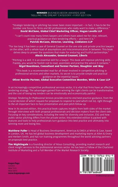 "In essence, this book is for partners, directors, associates, BD professionals, those working in-house and anyone working in professional services firms who want to win more pitches or manage the process more time and cost effectively. The first edition was a hit and won an award at the 2018 Business Book Awards. And this second edition brings it bang up to date." David Morley, Former Senior Partner, Allen & Overy, (2008-16); Head of Europe, CDPQ (2021-)