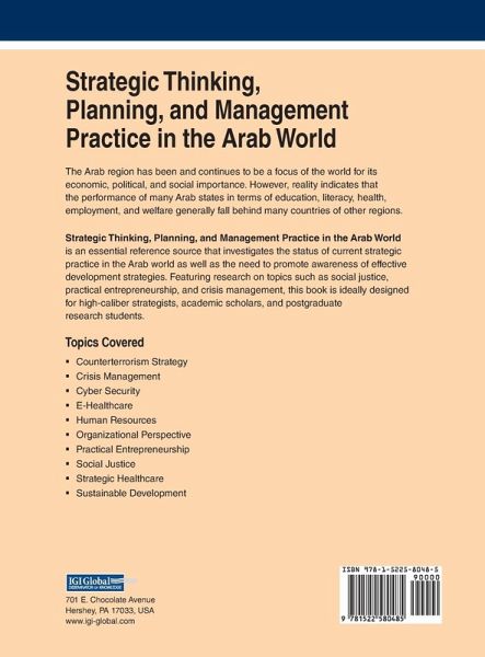 The Arab region has been and continues to be a focus of the world for its economic, political, and social importance. However, reality indicates that the performance of many Arab states in terms of education, literacy, health, employment, and welfare generally fall behind many countries of other regions. Strategic Thinking, Planning, and Management Practice in the Arab World is an essential reference source that investigates the status of current strategic practice in the Arab world as well as the need to promote awareness of effective development strategies. Featuring research on topics such as social justice, practical entrepreneurship, and crisis management, this book is ideally designed for high-caliber strategists, academic scholars, and postgraduate research students.