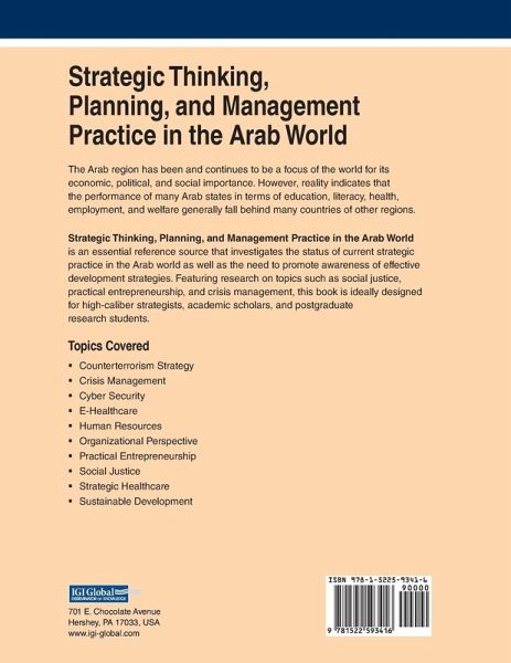 "This book examines the role of strategic thinking, planning and management as the main guarantor to ensure governments' stability, organizations' sustainability and Education quality from an Arab perspective"--
