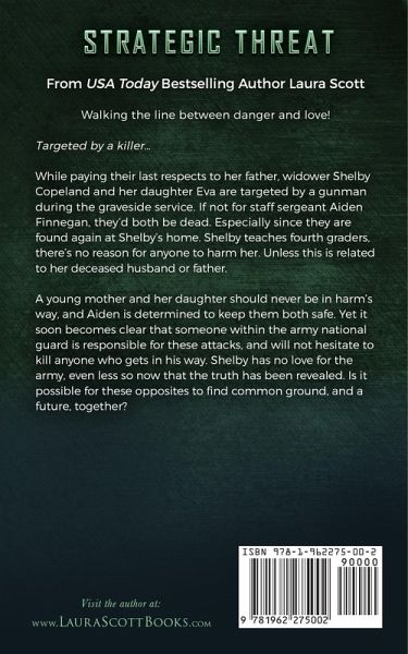 From USA Today Bestselling Author Laura Scott Walking the line between danger and love! Targeted by a killer... While paying their last respects to her father, widower Shelby Copeland and her daughter Eva are targeted by a gunman during the graveside service. If not for staff sergeant Aiden Finnegan, they'd both be dead. Especially since they are found again at Shelby's home. Shelby teaches fourth graders, there's no reason for anyone to harm her. Unless this is related to her deceased husband or father. A young mother and her daughter should never be in harm's way, and Aiden is determined to keep them both safe. Yet it soon becomes clear that someone within the army national guard is responsible for these attacks, and will not hesitate to kill anyone who gets in his way. Shelby has no love for the army, even less so now that the truth has been revealed. Is it possible for these opposites to find common ground, and a future, together?