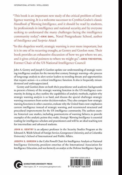 John A. Gentry and Joseph S. Gordon update our understanding of strategic warning intelligence analysis for the twenty-first century. Strategic warning--the process of long-range analysis to alert senior leaders to trending threats and opportunities that require action--is a critical intelligence function. It also is frequently misunderstood and underappreciated. Gentry and Gordon draw on both their practitioner and academic backgrounds to present a history of the strategic warning function in the US intelligence community, outline the capabilities of analytic methods, explain why strategic warning analysis is so hard, discuss the special challenges strategic warning encounters from senior decisionmakers, compare how strategic warning functions in other countries, evaluate why the United States has in recent years emphasized current intelligence instead of strategic warning, and recommend warning-related structural and procedural improvements in the US intelligence community. The authors also examine historical case studies, including postmortems of warning failures, to provide examples of the analytic points they make. Strategic Warning Intelligence will interest scholars and practitioners and will be an ideal teaching text for intermediate and advanced students.