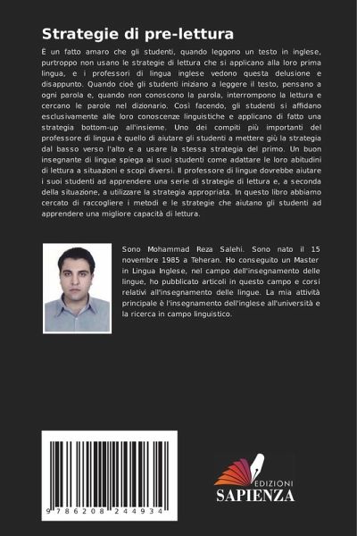 È un fatto amaro che gli studenti, quando leggono un testo in inglese, purtroppo non usano le strategie di lettura che si applicano alla loro prima lingua, e i professori di lingua inglese vedono questa delusione e disappunto. Quando cioè gli studenti iniziano a leggere il testo, pensano a ogni parola e, quando non conoscono la parola, interrompono la lettura e cercano le parole nel dizionario. Così facendo, gli studenti si affidano esclusivamente alle loro conoscenze linguistiche e applicano di fatto una strategia bottom-up all'insieme. Uno dei compiti più importanti del professore di lingua è quello di aiutare gli studenti a mettere giù la strategia dal basso verso l'alto e a usare la stessa strategia del primo. Un buon insegnante di lingue spiega ai suoi studenti come adattare le loro abitudini di lettura a situazioni e scopi diversi. Il professore di lingue dovrebbe aiutare i suoi studenti ad apprendere una serie di strategie di lettura e, a seconda della situazione, a utilizzare la strategia appropriata. In questo libro abbiamo cercato di raccogliere i metodi e le strategie che aiutano gli studenti ad apprendere una migliore capacità di lettura.