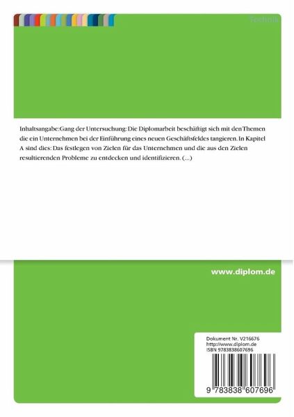 Die Diplomarbeit beschäftigt sich mit den Themen die ein Unternehmen bei der Einführung eines neuen Geschäftsfeldes tangieren.