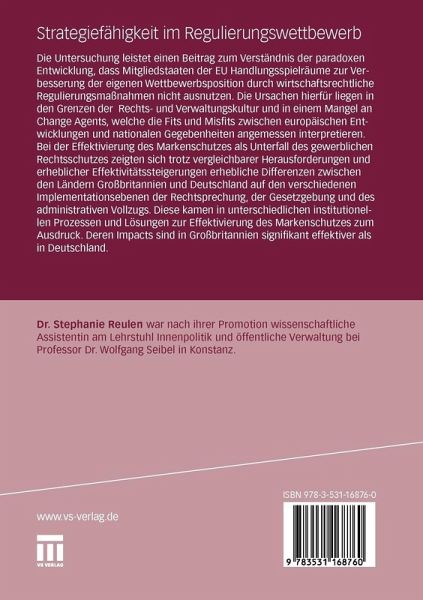 Dieses Buch ist im Rahmen des von der DFG geförderten Forschungsprojekts "Strategiefähigkeit im Regulierungswettbewerb. Gesetzgeberische, forensische und administrative Anpassungsprozesse im Zuge der Europäisierung des gewerb- chen Rechtsschutzes" entstanden. Wolfgang Seibel, dem Projektleiter, gilt an dieser Stelle mein besonderer Dank. Herzlich bedanken möchte ich mich auch bei Sebastian Wolf, der geduldig immer wieder verschiedene Fassungen des gesamten Manuskripts konstruktiv kritisierte. Bedanken möchte ich mich ebenso bei Kathrin Geiger. Sie hat vor allem die Vergleichbarkeit der britischen und deutschen Daten im Hinblick auf die Implementationseffektivität immer wieder hinterfragt und mir wichtige - regungen gegeben. Sie redigierte darüber hinaus die Rohfassungen einzelner Kapitel, lieferte wertvolle Literaturhinweise und gab einen Großteil der Daten ein. Ferner möchte ich mich bei allen technischen Helfern bedanken. Katja Schwanke und Matthias Mayr gaben weitere Daten einund waren bei der K- rektur der Daten und deren graphischen Darstellung hilfreich. Michael Bader hat mir geholfen, einen Großteil der Literatur zu beschaffen. Redaktionelle Hilfe erhielt ich von Johannes Surek, Florian Surek, Gabriele Reulen-Surek und Heinz Surek. Unter der Verantwortung von Johannes Cherbuliez halfen mir Miriam Eberle und Christine Thümler das Literaturverzeichnis in den Griff zu bekommen. Sonja Wassermann und Stefan Palma unterstützen mich bei den abschließenden Korrekturarbeiten und übernahmen die Formatierung für den Verlag.