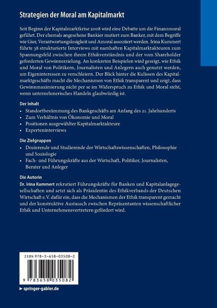 In 2012 wurden für diese wissenschaftliche Studie 38 prominente professionelle Kapitalmarktakteure, überwiegend Vorstände und Geschäftsleiter von Banken, zu deren Ethikverständnis befragt. Insbesondere interessierte, welche Rolle Ethik an der Schnittstelle zwischen Gewinnerzielung und Moral spielt, wie die Mechanismen der Ethik wirken und wie diese gezielt genutzt werden, um Eigeninteressen zu verschleiern. Die Einordnung gesellschaftlich relevanter Phänomene wie Gerechtigkeit und Gleichheit in diesen Kontext war ebenso ein Anliegen der Autorin wie die Darstellung der tatsächlichen ethischen Verfasstheit der Kapitalmarktakteure: Der häufig geäußerte pauschale Vorwurf, die professionellen Kapitalmarktakteure hätten kein Verständnis von Ethik und Moral, ist keinesfalls gerechtfertigt. Das bedeutet nicht, dass es bei den Kapitalmarktakteuren ein hohes Niveau an ethischer Orientierung gibt. Hier könnte die akademische Ethik einen deutlichen Mehrwert leisten, die immer noch Ethik und Ökonomie trennt: wer ökonomisch optimieren möchte, kann nicht gleichzeitig ethisch handeln. Die vorliegende Untersuchung ist insofern auch der Versuch, brauchbare Antworten auf die Frage zu geben, wie Ethik und Moral in das hoch technisierte und ökonomisch volatile Kapitalmarktgeschäft einfließen können, ohne dass per se angenommen wird, man habe es mit unvereinbaren Gegensätzen zu tun.