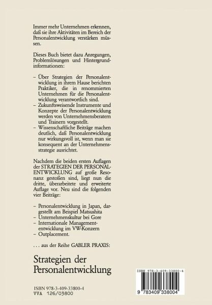 A: Ein realistisches Menschenbild als Grundlage der Personalentwicklung.- I. Verhaltens wissenschaftliche Aspekte der Personalentwicklung.- II. Menschliche Arbeit: Grundbedürfnis oder fremdgesetzte Norm? Konsequenzen für die Personalentwicklung.- B: Unternehmensstrategie und Personalentwicklung.- I. Strategieorientierte Personalentwicklung.- II. Strategisches Management von Human-Ressourcen.- C: Personalentwicklung in der Praxis.- I. Personalentwicklung bei der Adam Opel AG.- II. Personalentwicklung bei der Esso AG.- III. Personalentwicklung im Otto Versand.- IV. Personalentwicklung bei Beiersdorf.- V. Personalentwicklung bei der Drägerwerk AG.- VI. Mitarbeiterentwicklung bei Hewlett-Packard.- VII. Integrative Personalentwicklung: Das Beispiel der Nixdorf Computer AG.- VIII. Personalentwicklung in Japan: Das Beispiel Matsushita.- IX. Das Amöben-Konzept: Die organisatorische Erschließung von unternehmerischen Chancen in der GORE-Kultur.- D: Management- und Führungskräfteentwicklung in der Praxis.- I. Managemententwicklung bei Bertelsmann.- II. Auswahl und Förderung von Führungskräften bei IBM.- III. Führungskräfteentwicklung und Führungskräftefortbildung bei Philips.- IV. Aufwärtsbeurteilung bei BMW.- V. Internationale Managemententwicklung im VW-Konzern.- E: Instrumente der Personalentwicklung in der Diskussion.- I. Die Management-Potential-Analyse in der Praxis.- II. Das Einzel-Assessment als Baustein der Führungskräfteentwicklung.- III. Kreativitätsförderung als Aufgabe der Personalentwicklung.- IV. Warum denken wir "einseitig"? Der Brain-Dominance-Test als Instrument der Personalentwicklung.- V. Effizienzsteigerung in der Personalentwicklung durch Suggestopädie.- VI. Bildungs-Controlling - Instrumente zur Erfolgssteuerung derPersonalentwicklung.- VII. Outplacement: ein neues Instrument einer verantwortungsbewußten Personalentwicklung.- Die Autoren.- Stichwortverzeichnis.
