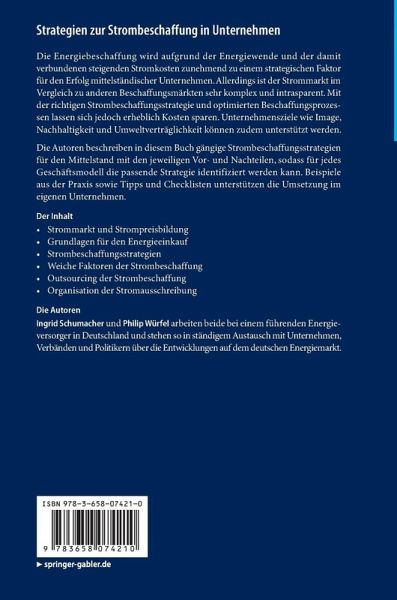 Die Autoren beschreiben in diesem Buch gängige Strombeschaffungsstrategien für den Mittelstand mit den jeweiligen Vor- und Nachteilen, sodass für jedes Geschäftsmodell die passende Strategie identifiziert werden kann. Beispiele aus der Praxis sowie Tipps und Checklisten unterstützten die Umsetzung im eigenen Unternehmen.