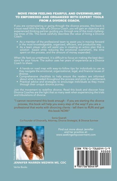 Move from feeling fearful and overwhelmed to empowered and organized with expert tools from a Certified Divorce Coach. If you are contemplating or going through the divorce process, this book is a must read! With the help of a Certified Divorce Coach, you will gain an objective and experienced thinking partner guiding you through one of the most challenging times of life. When divorce is the answer, it is difficult to focus on making the best decisions for your future. Jennifer Warren Medwin uses her years of experience as a Certified Divorce Coach, Certified Marital Mediator, and Supreme…mehr