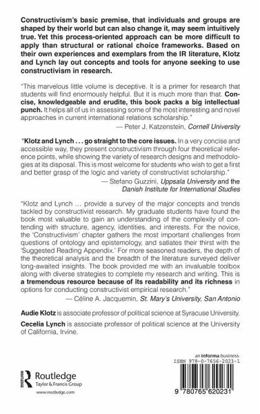 Constructivism's basic premise - that individuals and groups are shaped by their world but can also change it - may seem intuitively true. Yet this approach can be more difficult to apply than structural or rational choice frameworks. This work lays out concepts and tools for those seeking to apply the constructivist approach in research.