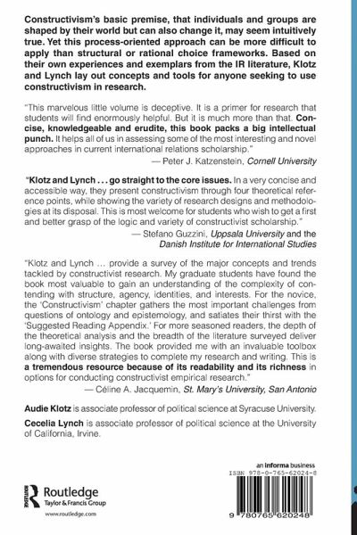 Constructivism's basic premise - that individuals and groups are shaped by their world but can also change it - may seem intuitively true. Yet this process-oriented approach can be more difficult to apply than structural or rational choice frameworks. Based on their own experiences and exemplars from the IR literature, well-known authors Audie Klotz and Cecelia Lynch lay out concepts and tools for anyone seeking to apply the constructivist approach in research. Written in jargon-free prose and relevant across the social sciences, this book is essential for anyone trying to sort out appropriate methods for empirical research.