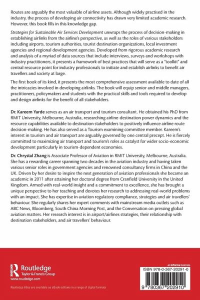 Dr. Kareem Yarde serves as an air transport and tourism consultant. He obtained his PhD from RMIT University, Melbourne, Australia, researching airline-destination power dynamics and the resource capabilities available to destination stakeholders to positively influence airline route decision-making. He has also served as a Tourism examining committee member. Kareem's interest in tourism and air transport are arguably governed by one central precept. He is fiercely committed to maximizing air transport and tourism's roles as catalyst for wider socio-economic development particularly in tourism-dependent economies. Dr Chrystal Zhang is Associate Professor of Aviation in RMIT University, Melbourne, Australia. She has a rewarding career spanning two decades in the aviation industry and having taken various senior roles in government agencies and renowned consultancy firms in China and the UK. Driven by her desire to inspire the next generation of aviation professionals she became an academic in 2011 after attaining her doctoral degree from Cranfield University in the United Kingdom. Armed with real-world insight and a commitment to excellence, she has brought a unique perspective to her teaching and devotes her research to addressing real-world problems with an impact. She has expertise in aviation regulatory compliance, strategies and air travellers' behaviour. She regularly shares her expert comments with mainstream media outlets such as ABC News, Bloomberg, South China Morning Post, and the Conversation on pressing global aviation matters. Her research interest is in airport/airlines strategies, their relationship with destination stakeholders, and air travellers' behaviour.
