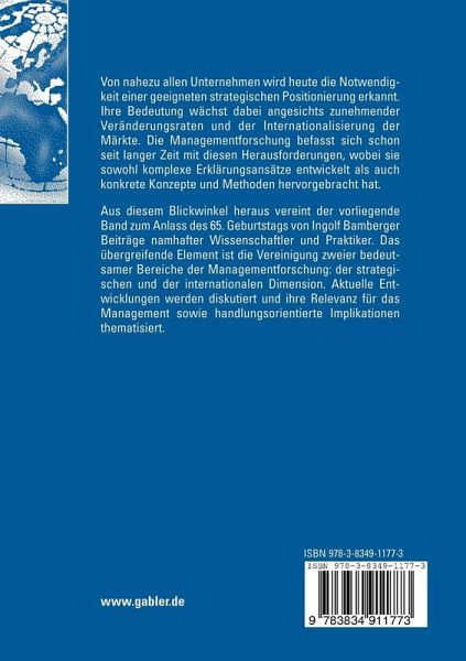 Aus diesem Blickwinkel heraus vereint der vorliegende Band zum Anlass des 65. Geburtstags von Ingolf Bamberger Beiträge namhafter Wissenschaftler und Praktiker. Das übergreifende Element ist die Vereinigung zweier bedeutsamer Bereiche der Managementforschung: der strategischen und der internationalen Dimension. Aktuelle Entwicklungen werden diskutiert und ihre Relevanz für das Management sowie handlungsorientierte Implikationen thematisiert.