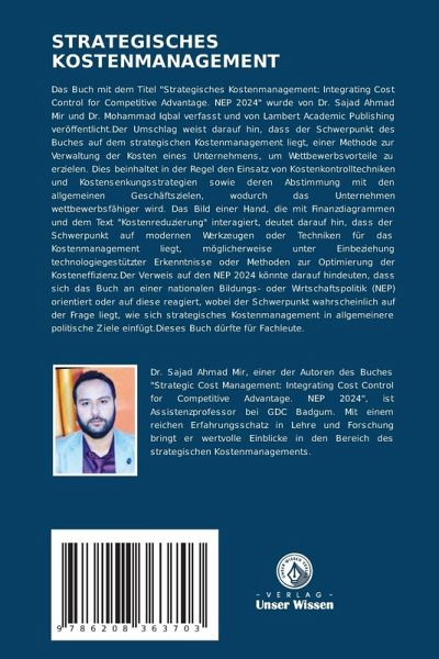 Das Buch mit dem Titel "Strategisches Kostenmanagement: Integrating Cost Control for Competitive Advantage. NEP 2024" wurde von Dr. Sajad Ahmad Mir und Dr. Mohammad Iqbal verfasst und von Lambert Academic Publishing veröffentlicht.Der Umschlag weist darauf hin, dass der Schwerpunkt des Buches auf dem strategischen Kostenmanagement liegt, einer Methode zur Verwaltung der Kosten eines Unternehmens, um Wettbewerbsvorteile zu erzielen. Dies beinhaltet in der Regel den Einsatz von Kostenkontrolltechniken und Kostensenkungsstrategien sowie deren Abstimmung mit den allgemeinen Geschäftszielen, wodurch das Unternehmen wettbewerbsfähiger wird. Das Bild einer Hand, die mit Finanzdiagrammen und dem Text "Kostenreduzierung" interagiert, deutet darauf hin, dass der Schwerpunkt auf modernen Werkzeugen oder Techniken für das Kostenmanagement liegt, möglicherweise unter Einbeziehung technologiegestützter Erkenntnisse oder Methoden zur Optimierung der Kosteneffizienz.Der Verweis auf den NEP 2024 könnte darauf hindeuten, dass sich das Buch an einer nationalen Bildungs- oder Wirtschaftspolitik (NEP) orientiert oder auf diese reagiert, wobei der Schwerpunkt wahrscheinlich auf der Frage liegt, wie sich strategisches Kostenmanagement in allgemeinere politische Ziele einfügt.Dieses Buch dürfte für Fachleute.