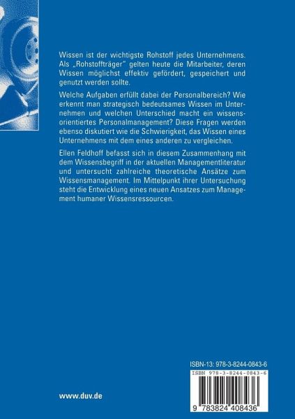Ellen Feldhoff befasst sich in diesem Zusammenhang mit dem Wissensbegriff in der aktuellen Managementliteratur und untersucht zahlreiche theoretische Ansätze zum Wissensmanagement. Im Mittelpunkt ihrer Untersuchung steht die Entwicklung eines neuen Ansatzes zum Management humaner Wissensressourcen.