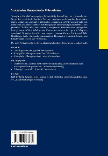 Das Lehrbuch "Strategisches Management in Unternehmen" setzt sich umfassend und praxisorientiert mit strategischen Entscheidungen auseinander und gibt einen Überblick über die Theorien, Konzepte und Instrumente des strategischen Managements auf Geschäftsfeld- und Unternehmensebene.