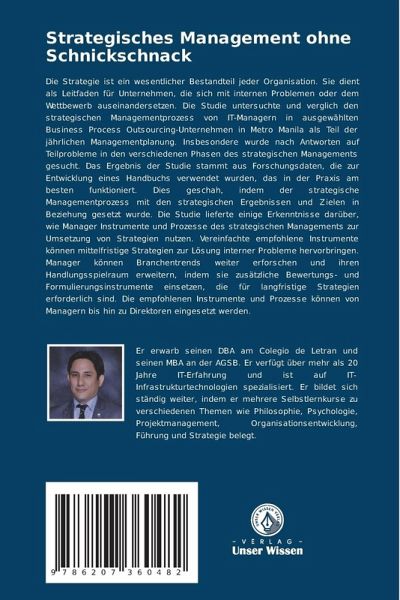 Die Strategie ist ein wesentlicher Bestandteil jeder Organisation. Sie dient als Leitfaden für Unternehmen, die sich mit internen Problemen oder dem Wettbewerb auseinandersetzen. Die Studie untersuchte und verglich den strategischen Managementprozess von IT-Managern in ausgewählten Business Process Outsourcing-Unternehmen in Metro Manila als Teil der jährlichen Managementplanung. Insbesondere wurde nach Antworten auf Teilprobleme in den verschiedenen Phasen des strategischen Managements gesucht. Das Ergebnis der Studie stammt aus Forschungsdaten, die zur Entwicklung eines Handbuchs verwendet wurden, das in der Praxis am besten funktioniert. Dies geschah, indem der strategische Managementprozess mit den strategischen Ergebnissen und Zielen in Beziehung gesetzt wurde. Die Studie lieferte einige Erkenntnisse darüber, wie Manager Instrumente und Prozesse des strategischen Managements zur Umsetzung von Strategien nutzen. Vereinfachte empfohlene Instrumente können mittelfristige Strategien zur Lösung interner Probleme hervorbringen. Manager können Branchentrends weiter erforschen und ihren Handlungsspielraum erweitern, indem sie zusätzliche Bewertungs- und Formulierungsinstrumente einsetzen, die für langfristige Strategien erforderlich sind. Die empfohlenen Instrumente und Prozesse können von Managern bis hin zu Direktoren eingesetzt werden.