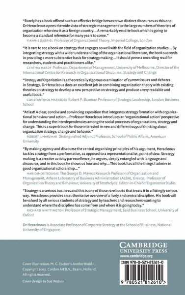 Examining some of the new and emerging issues in strategic management, Loizos Heracleous offers a fresh approach to the established ideas of strategy. Beginning with the historical development of the strategy field, including the influence of industrial organisation and the resource-based view, he develops a new perspective labelled an 'organisational action' view of strategy. This approach is theoretically underlain by organisation theory and takes seriously such issues as the role of agency, the need for a longitudinal focus on process, the complexities of strategy implementation, and organisational facets such as strategic choice, organisational culture, organisational discourses and learning. Combining theoretical subtlety with an applied orientation, Heracleous examines topical areas such as corporate governance, inter-organisational networks, and organising for the future. With original research and extensive surveys of the strategy literature, combined with a strong practical orientation, this book is ideal for MBA students, strategy researchers and the more thoughtful practitioner.