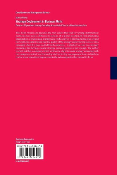 This book reveals and presents the root-causes that lead to varying improvement performances across different locations of a global positioned manufacturing organization. Conducting a multiple case study analysis of manufacturing sites around the world, the author found that the quality of the strategy deployment process is vital, especially when it is clear to all affected employees-a situation we refer to as strategy cascading. But having a sound strategy cascading alone is not enough. The author worked out that a company, which achieves to align its sound strategy cascading with the company context and leadership style of its top-management team, is likely to realize more operations improvements than do companies that missed to do so.