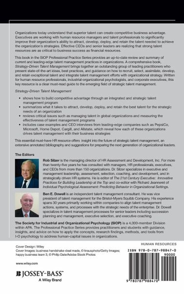 A Publication of the Society for Industrial and Organizational Psychology Praise for Strategy-Driven Talent Management "Silzer and Dowell's Strategy-Driven Talent Management provides a comprehensive overview of the different elements of the best talent management processes used in organizations today. This is a valuable resource for leaders and managers, HR practitioners and anyone involved in developing leadership talent." --Ed Lawler, Professor, School of Business, University of Southern California "Talent is the key to successful execution of a winning business strategy. Strategy-Driven Talent Management by Silzer & Dowell provides a thorough and very practical guide to building and managing talent based on the strategic needs of the organization. Business leaders will find this an excellent resource with many interesting examples and best practices from leading companies." --Herbert L. Henkel, Chairman and Chief Executive Officer, Ingersoll Rand "Thanks to Strategy-Driven Talent Management, we can move from an attractive idea of talent management to practices that deliver. This book brings the work of practitioners--the people who are inventing, crafting, and shaping the field of talent management--to the forefront. Their collective experiences and insights will certainly enrich your own research and practice." --Cynthia McCauley, PhD, Senior Fellow, Center for Creative Leadership "It is exciting to see that Rob Silzer and Ben Dowell have given us the state of the art in 2010 of integrating human resource issues into strategic management. This volume is a must read for human resource and line leaders alike. The journey is far from over, but this volume of work will chart the course for further progress." --Noel Tichy, Professor, Management and Organizations, University of Michigan, Ross School of Business