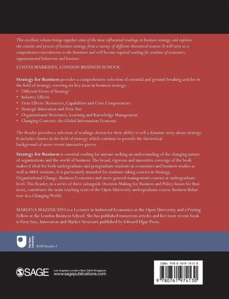 `This excellent volume brings together some of the most influential readings in business strategy and explores the content and process of business strategy... a comprehensive introduction to the literature and will become required reading for students of economics, organizational behaviour and business' - Costas Markides, London Business SchoolThis dynamic selection includes classics in the field of strategy which continue to provide the theoretical background of more recent innovative work. This is a course reader for The Open University undergraduate course Business Behaviour in a Changing World (B300).