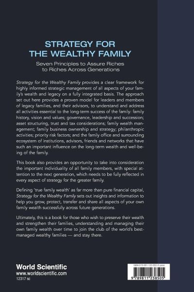 Strategy for the Wealthy Family provides a clear framework for highly informed strategic management of the family, the family business, the family's financial assets, the family's trust and tax management activities, philanthropic activities, risk factors and the family's surround ecosystem of institutions, advisors, friends and influencers. It also provides an approach to ensure the important individuality of all family members is fully reflected in every aspect of strategy for the greater family. Defining true family wealth as far more than pure financial capital, Strategy for the Wealthy Family sets out insights and information to help you grow, protect, transfer and share all aspects of your own family wealth successfully across future generations. Ultimately, this is a book for those who wish to understand and manage their own family wealth to join the club of the world's best-managed wealthy families - and stay there.