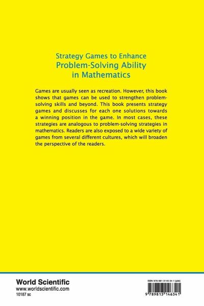 "This book may be used by an instructor to energize his or her classroom with fun and challenging problems. The games do not require any special equipment. Most can be played with paper, pencil and a copy of the game board. It is a good collection of different types of strategy games. By design, each game fosters mathematical growth. Many of the games originate from various countries around the world. This will allow the reader to experience a bit of cultural growth." MAA Reviews "This is a nice collection of board games, and when pupils will play such games, they will develop some winning strategies for these games, and these skills will probably help in cultivating certain attitudes and perhaps working schemes to tackle mathematical problems." European Mathematical Society "This is a nice collection of board games, and when pupils will play such games, they will develop some winning strategies for these games, and these skills will probably help in cultivating certain attitudes and perhaps working schemes to tackle mathematical problems." European Mathematical Society Games are seen only for recreation. However, this book shows that games can be used to strengthen problem-solving skills and beyond. This book presents strategy games and discusses for each one solutions towards a winning position in the game. In most cases, these strategies are analogous to problem-solving strategies in mathematics. Readers are also exposed to a wide variety of games from several different cultures, which will broaden the perspective of the readers.
