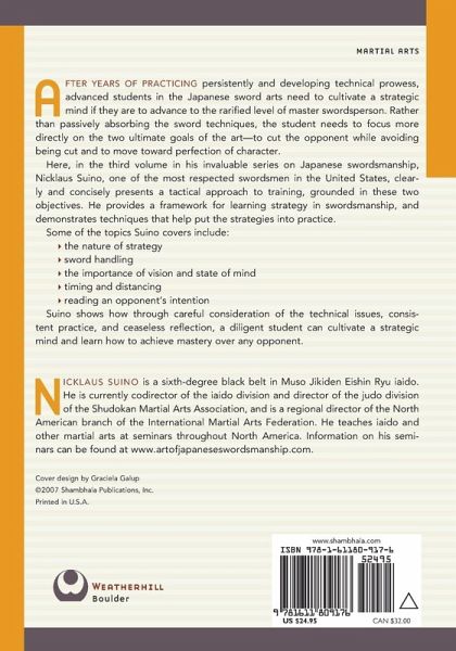 A step-by-step guide for advanced students of Japanese swordsmanship on cultivating a strategic mind in training. After years of practicing persistently and developing technical prowess, advanced students in the Japanese sword arts need to cultivate a strategic mind if they are to advance to the rarefied level of master swordsperson. Rather than passively absorbing the sword techniques, an ambitious student needs to focus more directly on the two ultimate goals of the art--to cut the opponent while avoiding being cut and to move toward perfection of character. In Strategy in Japanese Swordsmanship--the third volume in his invaluable series on Japanese swordsmanship--Nicklaus Suino, one of the most respected swordsmen in the United States, clearly and concisely presents a tactical approach to training, grounded in these two objectives. He provides a framework for learning strategy in swordsmanship, and demonstrates techniques and drills that help put the strategies into practice.