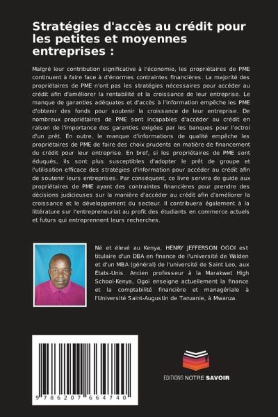 Malgré leur contribution significative à l'économie, les propriétaires de PME continuent à faire face à d'énormes contraintes financières. La majorité des propriétaires de PME n'ont pas les stratégies nécessaires pour accéder au crédit afin d'améliorer la rentabilité et la croissance de leur entreprise. Le manque de garanties adéquates et d'accès à l'information empêche les PME d'obtenir des fonds pour soutenir la croissance de leur entreprise. De nombreux propriétaires de PME sont incapables d'accéder au crédit en raison de l'importance des garanties exigées par les banques pour l'octroi d'un prêt. En outre, le manque d'informations de qualité empêche les propriétaires de PME de faire des choix prudents en matière de financement du crédit pour leur entreprise. En bref, si les propriétaires de PME sont éduqués, ils sont plus susceptibles d'adopter le prêt de groupe et l'utilisation efficace des stratégies d'information pour accéder au crédit afin de soutenir leurs entreprises. Par conséquent, ce livre servira de guide aux propriétaires de PME ayant des contraintes financières pour prendre des décisions judicieuses sur la manière d'accéder au crédit afin d'améliorer la croissance et le développement du secteur. Il contribuera également à la littérature sur l'entrepreneuriat au profit des étudiants en commerce actuels et futurs qui entreprennent leurs recherches.