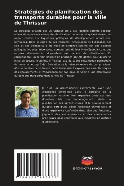 La durabilité urbaine est un concept qui a été identifié comme l'objectif ultime de nombreux efforts de planification modernes et qui est devenu un aspect central sur lequel les politiques de développement urbain sont formulées. Dans le cadre de ces concepts, l'intégration de l'utilisation des sols et des transports a été mise en évidence comme l'un des objectifs politiques les plus importants, compte tenu de leur interdépendance et des moyens d'intervention disponibles en matière de planification. En conséquence, un certain nombre de principes ont été définis pour guider sa mise en oeuvre. Toutefois, il n'existe pas de cadre d'évaluation permettant de mesurer le degré de réalisation de la mise en oeuvre de ces principes. Afin de combler cette lacune, cette étude vise à explorer les caractéristiques des déplacements et l'environnement bâti pour parvenir à une planification durable des transports dans la ville de Thrissur.