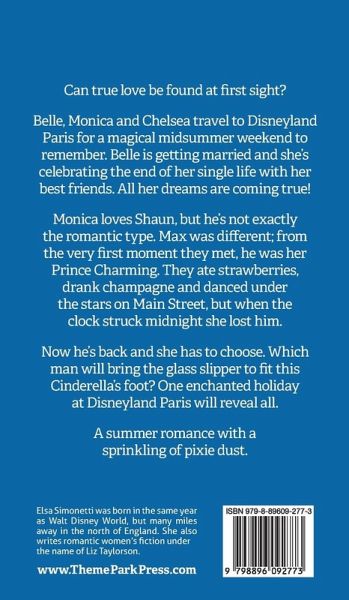 Can true love be found at first sight? Belle, Monica and Chelsea travel to Disneyland Paris for a magical midsummer weekend to remember. Belle is getting married and she's celebrating the end of her single life with her best friends. All her dreams are coming true! Monica loves Shaun, but he's not exactly the romantic type. Max was different; from the very first moment they met, he was her Prince Charming. They ate strawberries, drank champagne and danced under the stars on Main Street, but when the clock struck midnight she lost him. Now he's back and she has to choose. Which man will bring the glass slipper to fit this Cinderella's foot? One enchanted holiday at Disneyland Paris will reveal all. A summer romance with a sprinkling of pixie dust.