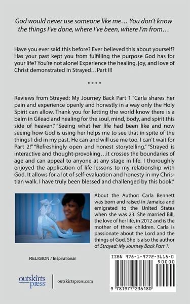 Are you still waiting for me, God? Don't You know what I have done. He can never love someone like me... Have you ever said this before? Has your past kept you from fulfilling the purposes God has for your life? Strayed is one woman's journey to release the past of her life to move into the plans that God has for her life. This trilogy will walk you through Carla's journey with a jealous God. Come along with her on the second portion of the journey. Let go the luggage of your past and recognize that God has a perfect plan for you. About the Author Carla Bennett was born and raised in the beautiful island of Jamaica. At the age of 23, she migrated to the United States. She is a wife and the mother of three children: two handsome young men and a beautiful princess. Carla is passionate about sharing her personal experiences and her journey with the Lord. Her prayer is that this book will inspire her readers and lead them into seeking the purpose that God has for each of their lives.
