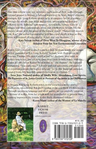 In Stream, Kay Long Roberts takes us on a lifetime of walks, from her youth with her grandfather to present time, learning important life lessons in this finely illustrated volume.