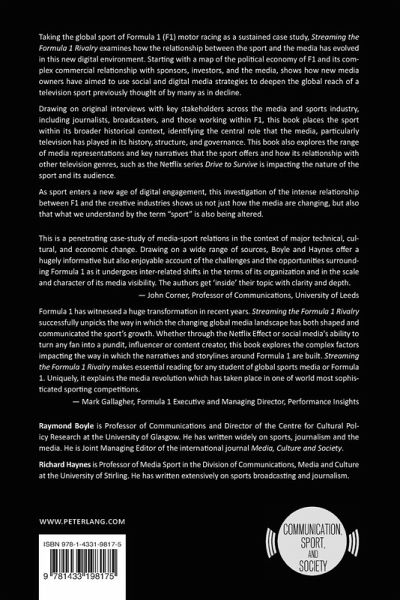 Taking the global sport of Formula 1 (F1) motor racing as a sustained case study, Streaming the Formula 1 Rivalry examines how the relationship between the sport and the media has evolved in this new digital environment. Starting with a map of the political economy of F1 and its complex commercial relationship with sponsors, investors, and the media, shows how new media owners have aimed to use social and digital media strategies to deepen the global reach of a television sport previously thought of by many as in decline.