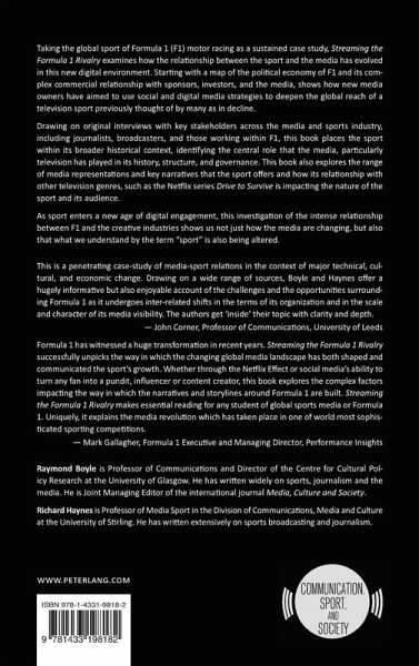 Taking the global sport of Formula 1 (F1) motor racing as a sustained case study, Streaming the Formula 1 Rivalry examines how the relationship between the sport and the media has evolved in this new digital environment. Starting with a map of the political economy of F1 and its complex commercial relationship with sponsors, investors, and the media, shows how new media owners have aimed to use social and digital media strategies to deepen the global reach of a television sport previously thought of by many as in decline.
