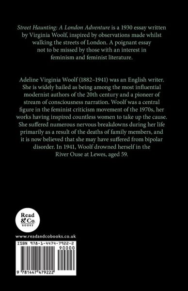 From the pioneering author Virginia Woolf, this pocket-sized essay transports the reader back to the 1930s as she walks through London's streets and loses herself in the imagined lives of the city's inhabitants. The narrator of this classic essay escorts the reader through the wintry streets of London on her journey to purchase a pencil. Virginia Woolf's mesmerising writing style allows the reader to delve into the minds and lives of passersby as we tour her neighbourhood. Reading as a diary entry, Street Haunting: A London Adventure includes imaginative observations and vivid reflections on city life. Woolf is widely known as one of the most influential modernist writers of the 20th century, and this classic essay offers a glimpse into the innerworkings of her brilliant mind. Republished by Read & Co. Great Essays, this pocket-sized edition of Street Haunting: A London Adventure is completed by Woolf's essay 'Evening Over Sussex: Reflections in a Motor Car'. This intimate essay is a must-read for fans of Woolf and those interested in feminist literature.