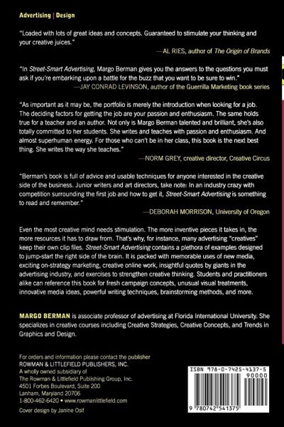 Even the most creative mind needs stimulation. The more inventive pieces it takes in, the more resources it has to draw from. That's why many advertising "creatives" keep their own clip files. Street-Smart Advertising contains a plethora of examples designed to jump-start the right side of the brain. It is packed with memorable uses of new media, exciting on-strategy marketing, creative online work, insightful quotes by giants in the advertising industry, and exercises to strengthen creative thinking. Students and practitioners alike can reference this book for fresh campaign concepts, unusual visual treatments, innovative media ideas, powerful writing techniques, brainstorming methods, and more.
