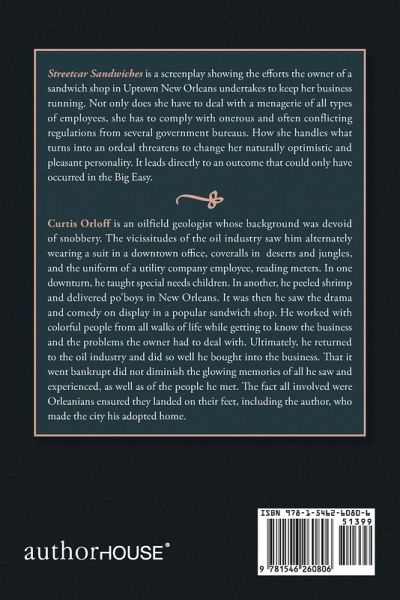Curtis Orloff is an oilfield geologist whose background was devoid of snobbery. The vicissitudes of the oil industry saw him alternately wearing a suit in a downtown office, coveralls in deserts and jungles, and the uniform of a utility company employee, reading meters. In one downturn, he taught special needs children. In another, he peeled shrimp and delivered po'boys in New Orleans. It was then he saw the drama and comedy on display in a popular sandwich shop. He worked with colorful people from all walks of life while getting to know the business and the problems the owner had to deal with. Ultimately, he returned to the oil industry and did so well he bought into the business. That it went bankrupt did not diminish the glowing memories of all he saw and experienced, as well as of the people he met. The fact all involved were Orleanians ensured they landed on their feet, including the author, who made the city his adopted home.