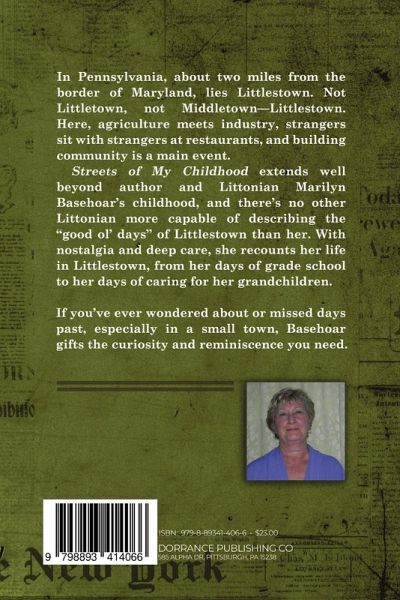 In Pennsylvania, about two miles from the border of Maryland, lies Littlestown. Not Littletown, not Middletown-Littlestown. Here, agriculture meets industry, strangers sit with strangers at restaurants, and building community is a main event. Streets of My Childhood extends well beyond author and Littonian Marilyn Basehoar's childhood, and there's no other Littonian more capable of describing the "good ol' days" of Littlestown than her. With nostalgia and deep care, she recounts her life in Littlestown, from her days of grade school to her days of caring for her grandchildren. If you've ever wondered about or missed days past, especially in a small town, Basehoar gifts the curiosity and reminiscence you need.