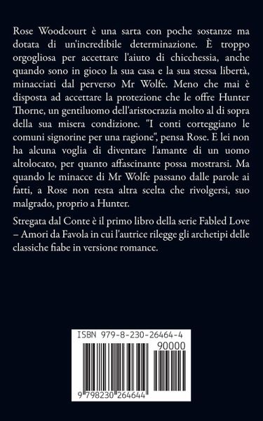 Rose Woodcourt è una sarta con poche sostanze ma dotata di un'incredibile determinazione. È troppo orgogliosa per accettare l'aiuto di chicchessia, anche quando sono in gioco la sua casa e la sua stessa libertà, minacciati dal perverso Mr Wolfe. Meno che mai è disposta ad accettare la protezione che le offre Hunter Thorne, un gentiluomo dell'aristocrazia molto al di sopra della sua misera condizione. "I conti corteggiano le comuni signorine per una ragione", pensa Rose. E lei non ha alcuna voglia di diventare l'amante di un uomo altolocato, per quanto affascinante possa mostrarsi. Ma quando le minacce di Mr Wolfe passano dalle parole ai fatti, a Rose non resta altra scelta che rivolgersi, suo malgrado, proprio a Hunter. Stregata dal Conte è il primo libro della serie Fabled Love - Amori da Favola in cui l'autrice rilegge gli archetipi delle classiche fiabe in versione romance.