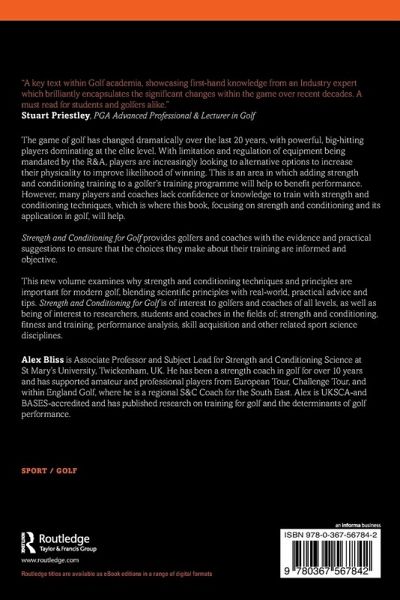 The game of golf has changed dramatically over the last 20 years, with powerful, big-hitting players dominating at the elite level. With limitation and regulation of equipment being mandated by the R&A, players are increasingly looking to alternative options to increase their physicality to improve likelihood of winning. This is an area in which adding strength and conditioning training to a golfer's training programme will help to benefit performance. However, many players and coaches lack confidence or knowledge to train with strength and conditioning techniques, which is where this book, focusing on strength and conditioning and its application in golf, will help.