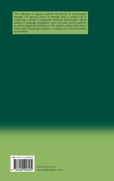 The papers introduce illuminating data from a wide range of languages including English, Dutch, German, Greek, Japanese, Bambara, Yuhup, Nivkh, Sesotho and other Bantu systems, demonstrating how strength differences are central to the analysis of phonological patterning not only in well-documented cases of segmental asymmetry but also in other areas of description including language acquisition, pitch accent patterns and tonal phenomena. All of the contributors agree on the need for a phonological (as opposed to a phonetic) approach to the question of strength differences, and show how a strength-based analysis may proceed in various theoretical models including Dependency Phonology, Government Phonology, Strict CV Phonology and Optimality Theory.
