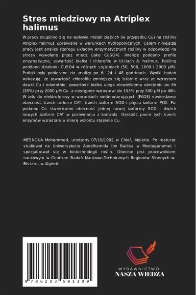 W pracy skupiono si¿ na wp¿ywie metali ci¿¿kich (w przypadku Cu) na ro¿liny Atriplex halimus uprawiane w warunkach hydroponicznych. Celem niniejszej pracy jest analiza szeregu uk¿adów enzymatycznych ro¿liny w odpowiedzi na stresy wywo¿ane przez mied¿ (jako CuSO4). Analizie poddano profile enzymatyczne, zawarto¿¿ biäka i chlorofilu w li¿ciach A. halimus. Ro¿lin¿ poddano dziäaniu CuSO4 w ró¿nych st¿¿eniach (50, 500, 1000 i 2000 µM). Próbki by¿y pobierane do analizy po 6, 24 i 48 godzinach. Wyniki badä wskazuj¿, ¿e zawarto¿¿ chlorofilu zmniejsza si¿ istotnie wraz ze wzrostem dawki Cu i odwrotnie, zawarto¿¿ biäka ulega niewielkiemu obni¿eniu po 6h (38%) przy 2000 µM Cu, a nast¿pnie wzrostowi do 155% przy 500 µM po 48h. W ¿elu do elektroforezy w warunkach niedenaturuj¿cych (PAGE) stwierdzono obecno¿¿ trzech izoform CAT, trzech izoform SOD i pi¿ciu izoform POX. Po podaniu Cu stwierdzono obecno¿¿ jednej nowej izoformy SOD i dwóch nowych izoform CAT w porównaniu z kontrol¿. G¿sto¿¿ pasm tych trzech enzymów wzrastäa w miar¿ wzrostu st¿¿enia Cu.