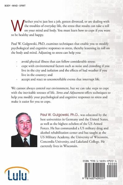 Whether you've just lost a job, gotten divorced, or are dealing with the troubles of everyday life, the stress that results can take a toll on your mind and body. You must learn how to cope if you want to be healthy and happy. Paul W. Gulgowski, PhD, examines techniques that enable you to modify psychological and cognitive responses to stress, thereby lessening its toll on the body and mind. Adjusting to stress can help you: ¿ avoid physical illness that can follow considerable stress; ¿ cope with environmental factors such as noise and crowding if you live in the city and isolation and the effects of bad weather if you live in the country; and ¿ accept and react to uncontrollable events that interrupt life. We cannot always control our environment, but we can take steps to cope with the inevitable stresses of life. Stress and Adjustment offers techniques to help you modify your psychological and cognitive responses to stress and make it easier for you to cope.