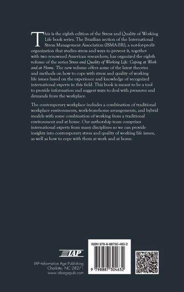 This is the eighth edition of the Stress and Quality of Working Life book series. The Brazilian section of the International Stress Management Association (ISMA-BR), a not-for-profit organization that studies stress and ways to prevent it, together with two renowned American researchers, has organized the eighth volume of the series Stress and Quality of Working Life: Coping at Work and at Home. The new volume offers some of the latest theories and methods on how to cope with stress and quality of working life issues based on the experience and knowledge of recognized international experts in this field. This book is meant to be a tool to provide information and suggest ways to deal with pressures and demands from the workplace. The contemporary workplace includes a combination of traditional workplace environments, work-from-home arrangements, and hybrid models with some combination of working from a traditional environment and at home. Our authorship team comprises international experts from many disciplines so we can provide insights into contemporary stress and quality of working life issues, as well as how to cope with them at work and at home.