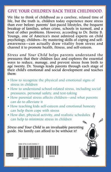 GIVE YOUR CHILDREN BACK THEIR CHILDHOOD. We like to think of childhood as a carefree, relaxed time of life, but the truth is, children today experience more stress than ever before: parents' fast-paced lifestyles, the frequent breakup of families, urban crime, schools in turmoil, and a host of other problems. However, according to Bettie B. Youngs, Ph.D., Ed.D, one of America's most admired experts on child psychology, children--by mastering skills of coping and self-awareness--can actually draw vitality from stress and channel it to promote health, fitness, and self-esteem. Stress and Your Child helps parents understand the pressures that their children face and explores the essential ways to reduce, manage, and prevent stress from birth to age twenty. Dr. Youngs leads parents through each stage of their child's emotional and social development and teaches them: -- How to recognize the physical and emotional signs of stress in children -- How to understand school-related stress, including social pressures, personal safety, and test-taking -- How parental stress affects children--and what parents can do to alleviate t -- How teaching kids self-esteem and emotional honesty can help them cope wth stress -- How diet, physical activity, and realistic schedules can help to minimize stress in children Stress and Your Child is an invaluable parenting guide. No family can afford to be without it!