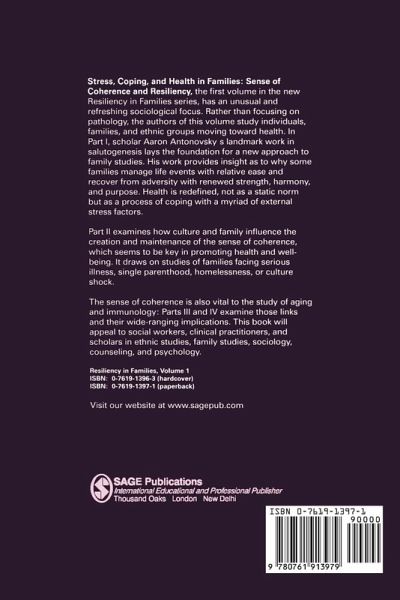 Rather than investigating the pathology of families under stress, this book takes the unusual step of studying individuals, families and ethnic groups moving towards health. This approach provides new insights as to why some families manage life events with relative ease and recover from adversity with renewed strength, harmony and purpose. The contributors develop the concept of family and cultural `coherence' as the key to promoting health and well-being.